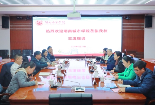 2026年3月23日,湖南城市学院党委委员、副校长谭献良率计划财务处、资产经营有限公司等部门相关负责人一行5人,赴湖南女子学院开展交流座谈。座谈会在湖南女子学院办公楼第一会议室召开,湖南女子学院党委书记何旭娟出席,相关职能部门负责人参会,副校长文宁主持会议。